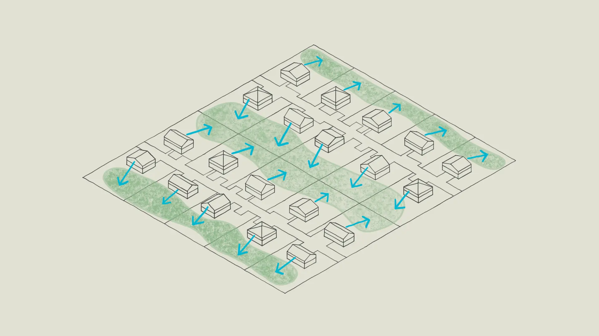 L’emplacement et l’orientation des maisons existantes ont créé des perspectives et des espaces verts continus à l’échelle du quartier.