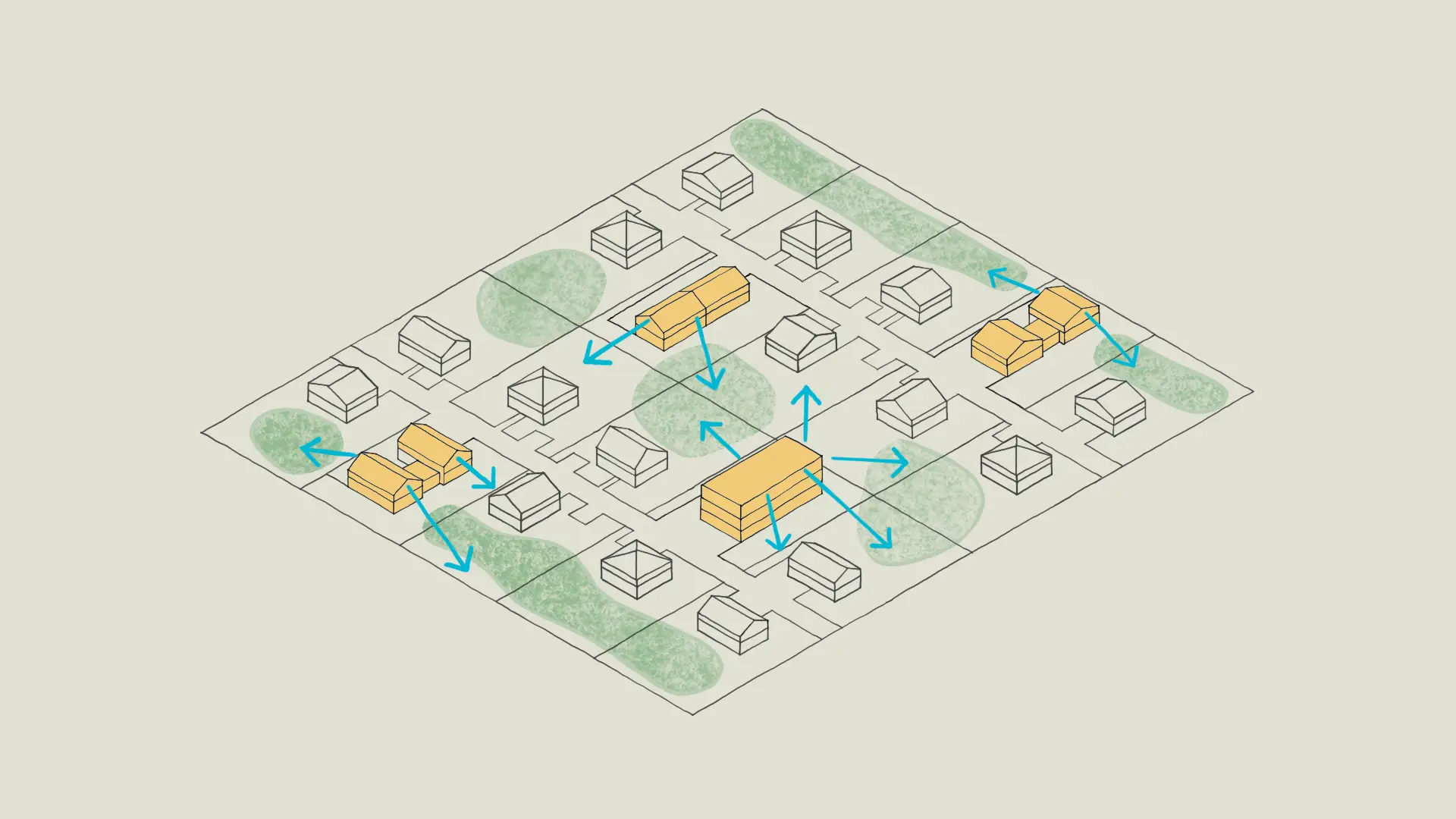 Ces trois stratégies de densification compacte complètent le bâti existant sans impacter les jardins.